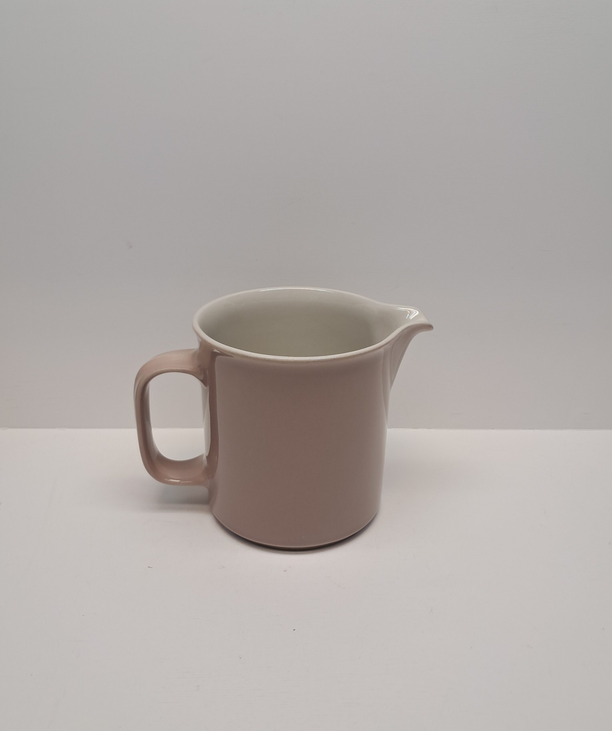 Suunnittelija Raija Uosikkinen. Kannun korkeus 13,5 cm, halkaisija 12,5 cm. Tilavuus 1 l. Kunto hyvä, vähäistä käyttökulumaa.