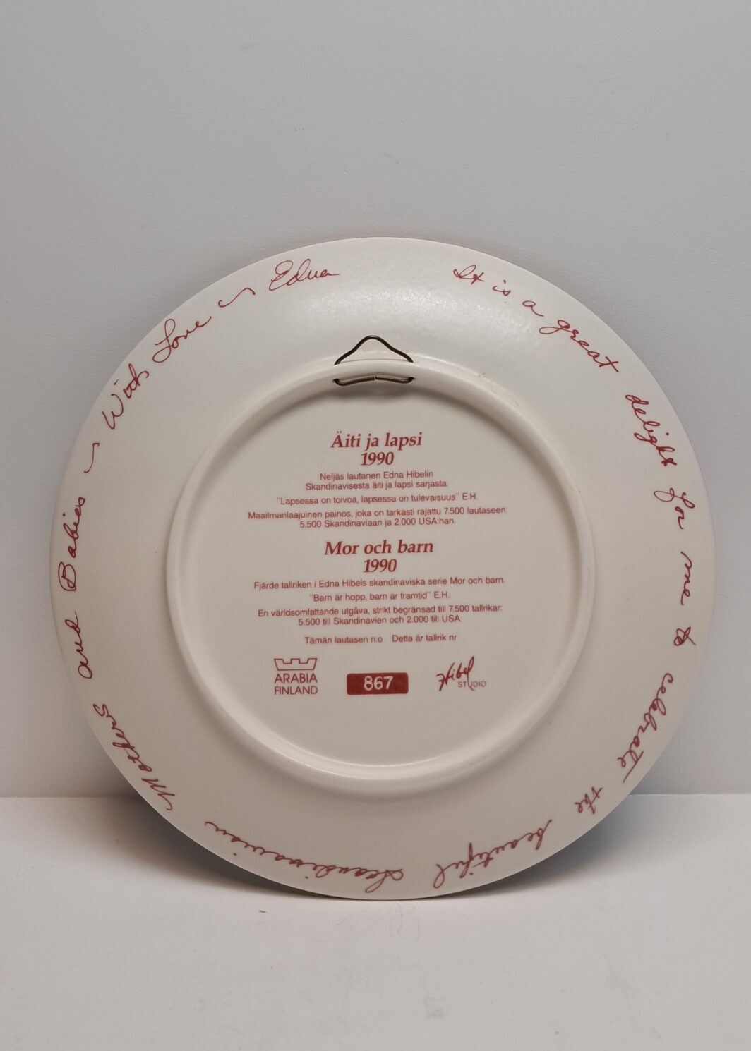 Arabia äiti ja lapsi vuosilautanen 1990